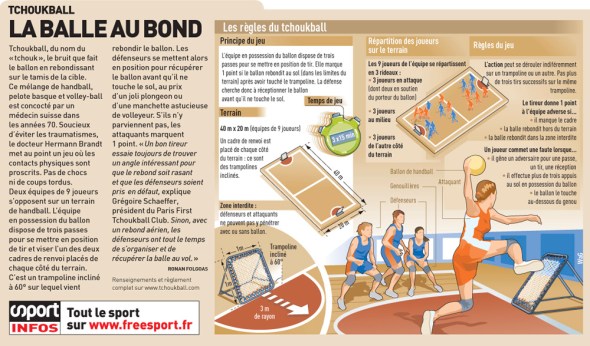 “Le tchoukball est un sport d’équipe qui vient de Genève. Dans les années 1960, le but de son inventeur, Dr. Hermann Brandt, était de créer un sport sans risques ou à faibles risques de blessures, et facile à jouer, pour amener les gens à faire une activité physique.